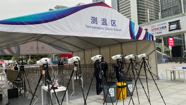 作为获得工信部点赞的科技抗疫明星产品,SB时博·(中国)体育官方网站在线式双光人体测温仪,全程驻守在各大展馆的出入口,为本次盛会防疫提供全程红外测温安全保障。